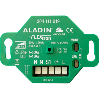 Moderner Funkdimmer zum Dimmen und Schalten von dimmbaren 230V-LEDs und Halogenleuchten. Ansteuerung via Funktaster oder über Nebenstelle mit verkabelten Tastern. Ideal in Neubauten und bei Renovationen.