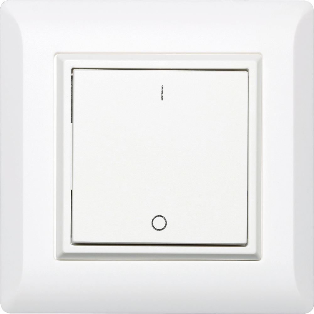 Funktioniert ohne Verkabelung und ohne Batterie durch Drücken der Wippe und ist völlig wartungsfrei. Der Funktaster sendet via 868MHz ein EnOcean-Protokoll.