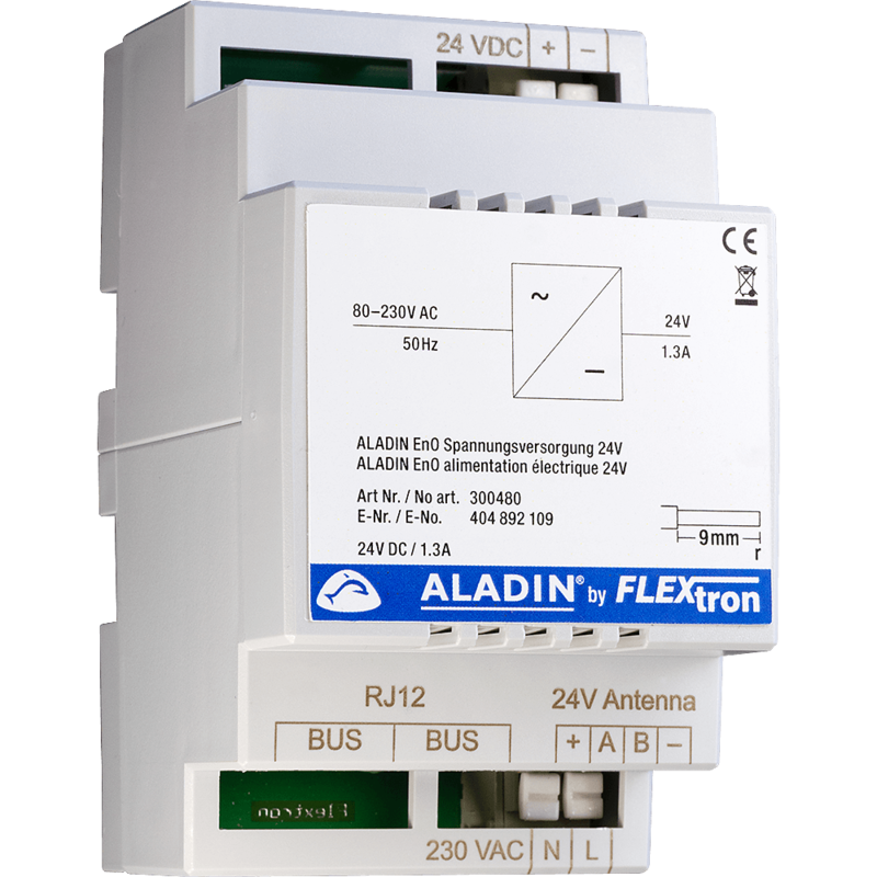 Spannungsversorgung (SPV) für den Internen ALADIN Modulbus und ALADIN Antennenmodule. Jede Spannungsversorgung kann Module bis max. 1300 mA versorgen. Sichere Funkverbindung auch in grossen Gebäuden, da beliebig viele Antennen-Module in Serie via Antennen-Bus (G51-Kabel) auf das REG-System geführt werden können.